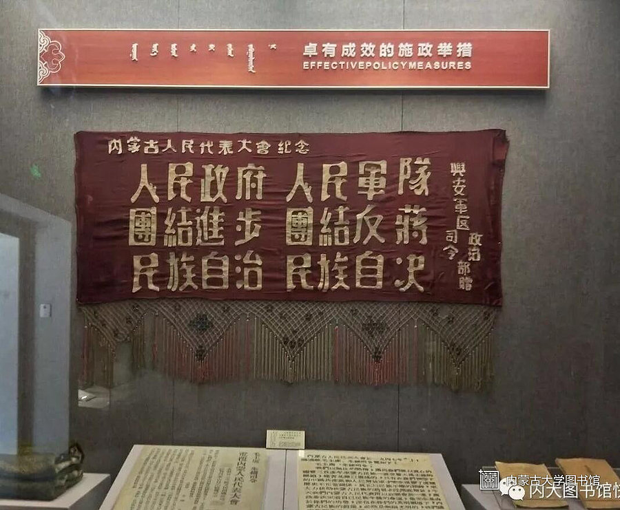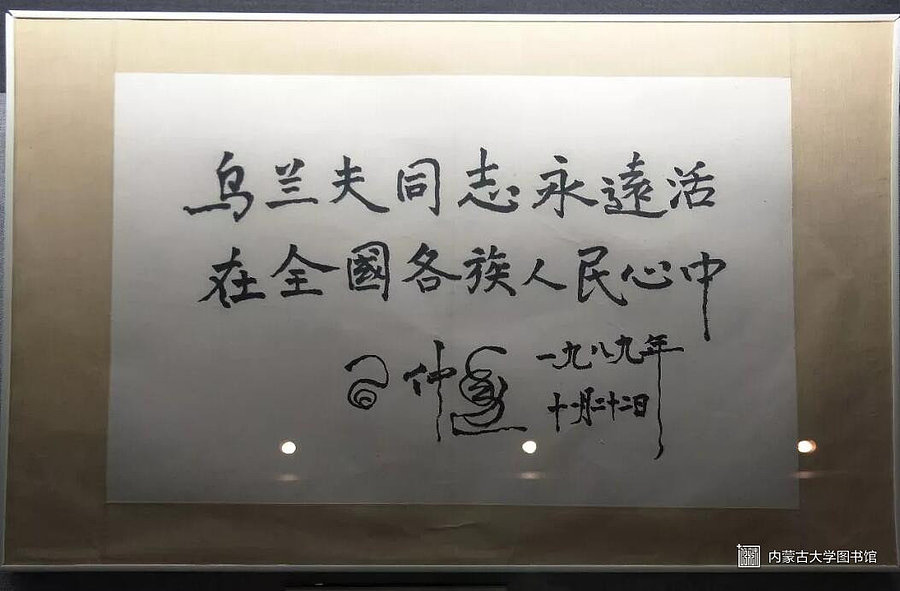 “实践自治,功垂千秋”“实事求是,建设边疆”“为国操劳,鞠躬尽瘁”三个部分讲述了乌兰夫筹备成立内蒙古自治区和新中国成立后推进内蒙古建设的突出贡献。在乌兰夫主持内蒙古工作期间,内蒙古地区经济、科技、文化事业迅速发展。同时,他主持起草了《中华人民共和国民族区域自治法》,为维护祖国统一和各民族团结做出了巨大贡献。
