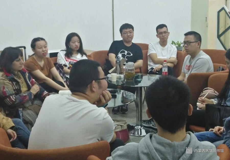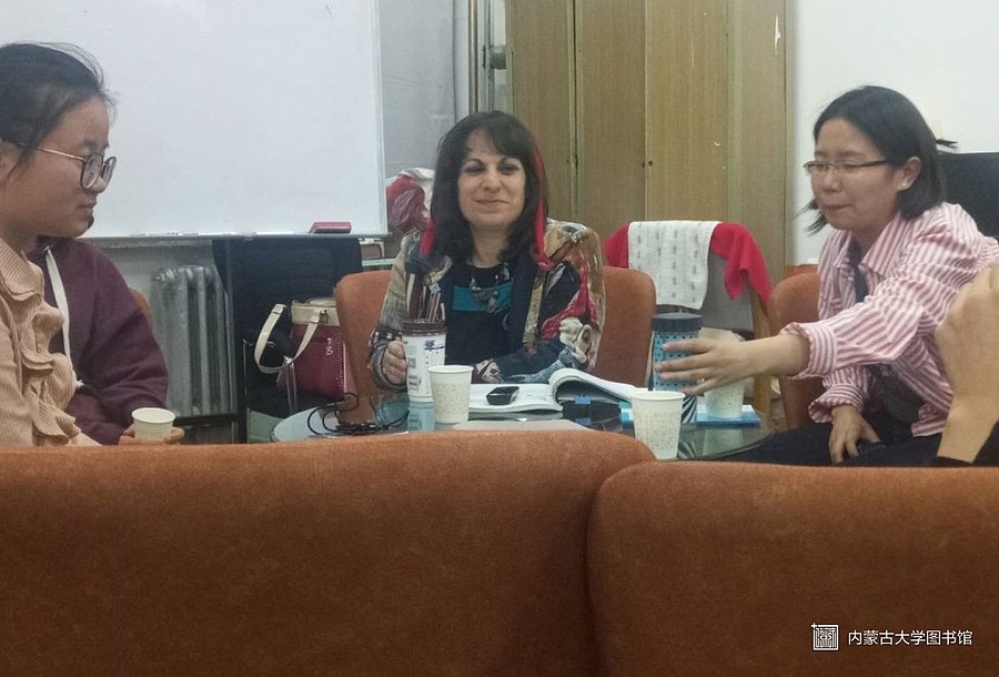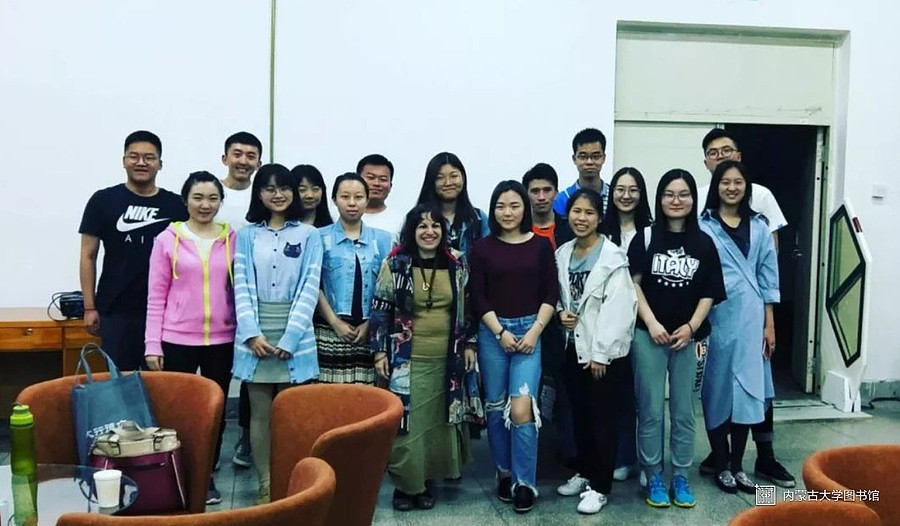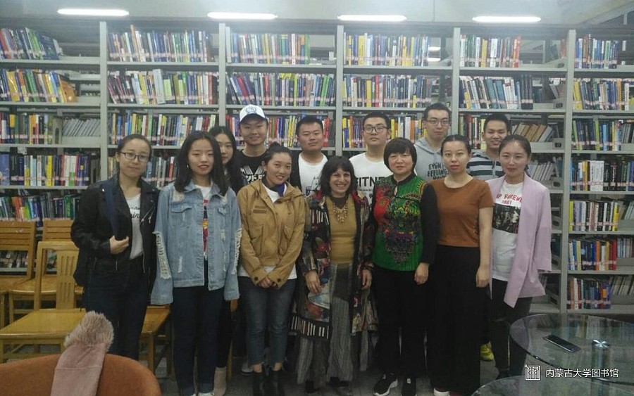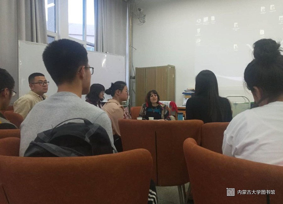 Penny老师介绍了自己是希腊人,现在是内蒙古大学外国语学院的外教老师。闫老师是图书馆老师,英语沙龙的组织者。为了活跃英语沙龙气氛,激发同学们学习英语的热情。闫老师会定期邀请外籍教师、各国留学生与同学们进行现场交流。