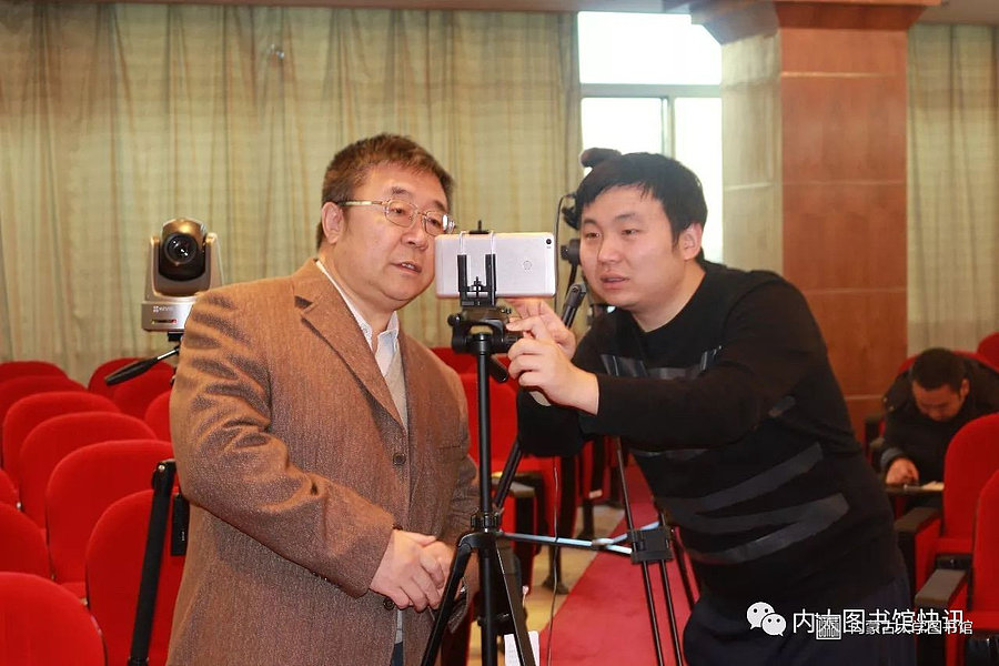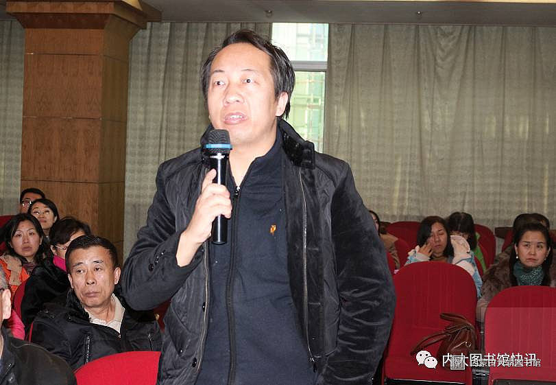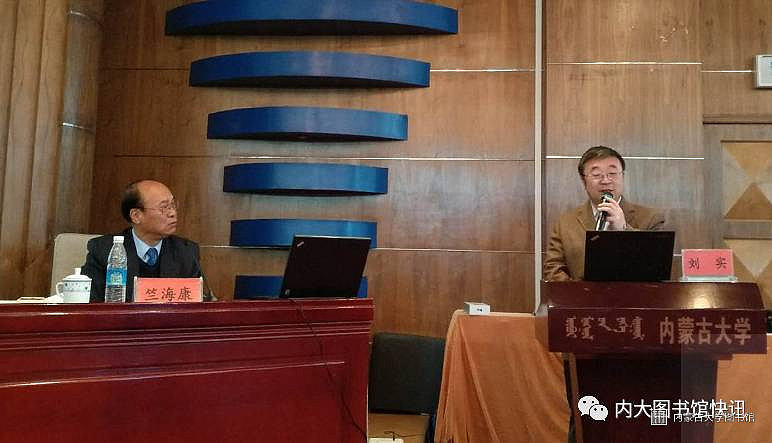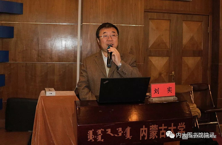 内蒙古自治区图书馆学会副理事长、自治区高校图工委主任、内蒙古大学图书馆馆长刘实教授主持讲座。