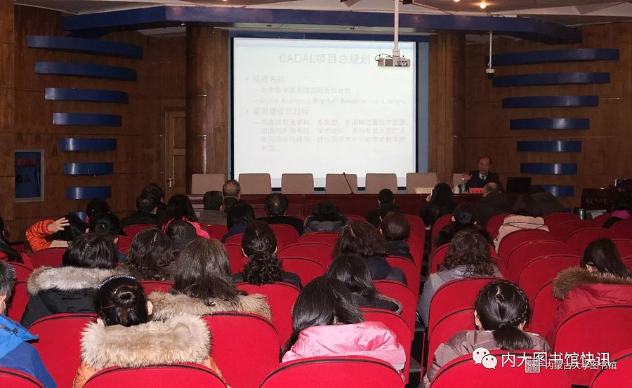 为了推动我区各高校图书馆特色资源数字化工作,扩宽高校图书馆员的学术视野,2017年12月10日上午,内蒙古自治区高校图工委、内蒙古大学图书馆特邀请CADAL管理中心常务副主任、原浙江大学图书馆馆长竺海康教授举办“共享 扁平 互动—— CADAL项目实践与规划”专题学术讲座。该讲座在内蒙古大学图书馆(北校区)二楼报告厅举办,200多位来自校内外从事图书资料专业的工作人员和我校师生到场聆听。