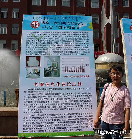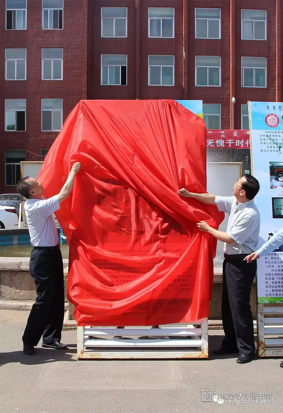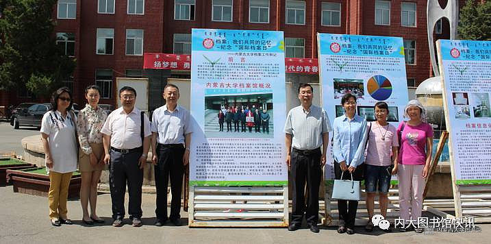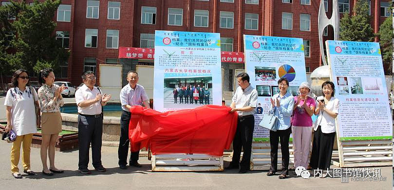 2017年6月9日,为纪念第10个国际档案日,内蒙古大学在学校主楼前隆重举行《档案:我们共同的记忆——纪念“国际档案日”(内蒙古大学档案工作侧记)》专题展览揭幕仪式,旨在建校60周年校庆期间,让更多的人了解档案工作,了解档案馆,了解档案与学校、与社会、与内大人的关系,让档案成为每位内大人永久的回忆。内蒙古大学副校长赵吉教授,内蒙古大学党委宣传部部长李为民博士为本次展览揭幕。
