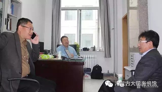 10月15日,包头医学院副院长霍洪军教授访问内蒙古大学图书馆,与馆长刘实教授、副馆长鲍玉来副教授座谈。 大聪 摄