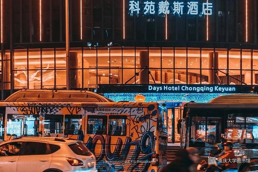 重庆大学B区大门,每天从工作室的窗望出去就是远处的歌乐山和近处的B区大门,旁边以前的科苑酒店经过重新装修后现在已经更名为科苑戴斯酒店。
