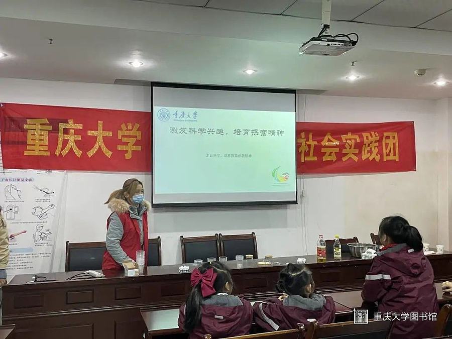 2022年1月13日下午,重庆大学“青青联袂”实践团前往重庆市沙坪坝区金沙社区开展了寒假社会实践活动,实践团深入基层,以为小朋友讲解科学实验并带领小朋友做科学实验的活动来培养和提高小朋友的科学素养以及创新能力,体现了重庆大学学子的时代担当。