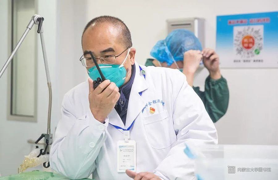 2020年1月27日,时任武汉金银潭医院院长的张定宇在医院综合病区楼联系、协调工作 新华社发(柯皓 摄)