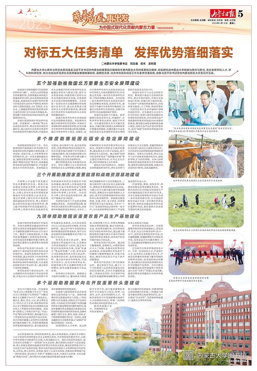4月18日,《内蒙古日报》整版发表了我校党委书记刘志彧,校长武利民的署名文章《对标五大任务清单 发挥优势落细落实》。