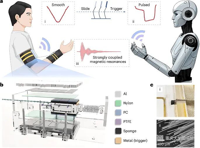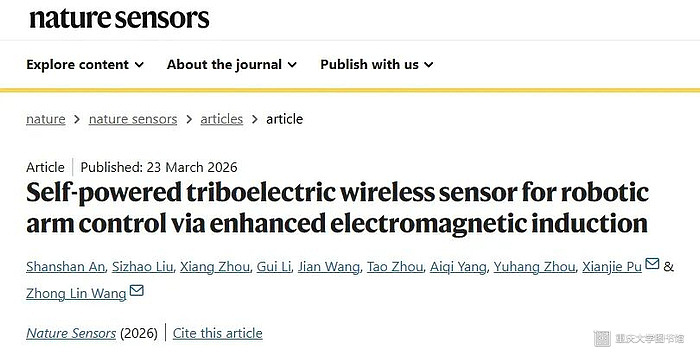 在此,中国科学院纳米能源与纳米系统研究所王中林院士联合重庆大学蒲贤洁副教授团队提出了一种全新的解决方案:基于摩擦纳米发电机与强耦合磁共振技术,研究团队开发出一种完全自供能的无线传感系统,实现了人体手臂运动到机器人控制信号的直接转化。该系统不仅摆脱了电池依赖,还在能量输出、信号稳定性和系统集成度方面实现突破,为智能制造、医疗机器人以及虚拟现实等领域提供了全新技术路径。相关成果以“Self-powered triboelectric wireless sensor for robotic control via enhanced electromagnetic induction”为题发表在《Nature Sensors》上。Shanshan An和Sizhao Liu为共同第一作者。
